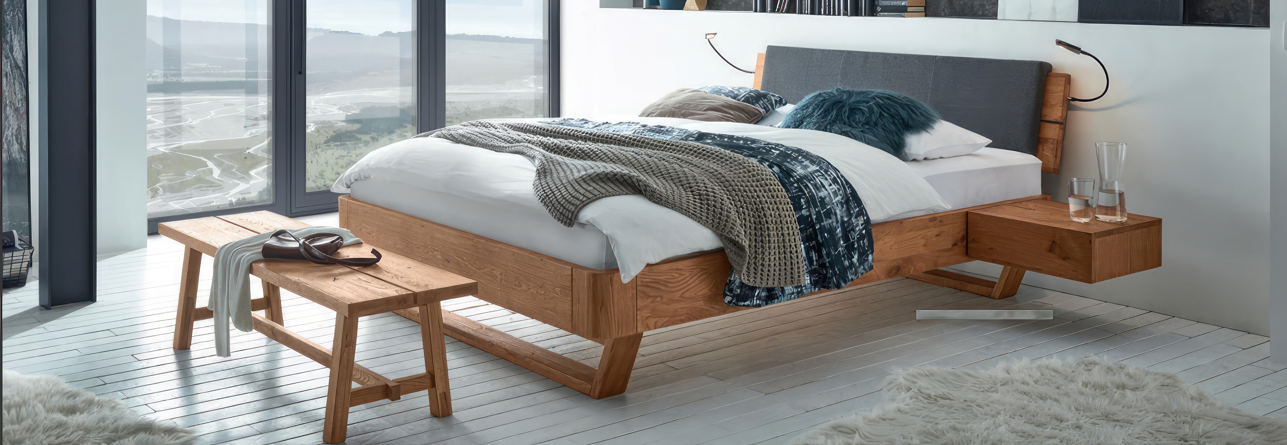 pat + noptiera din lemn masiv de stejar HAVANA 2